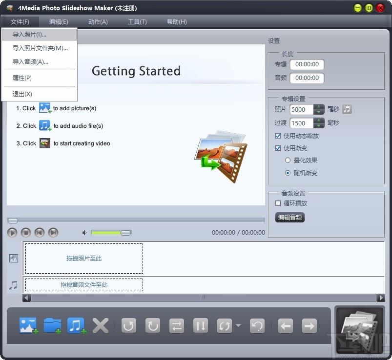 支持拖放功能,可直接拖放照片文件与音频文件进行幻灯片制作