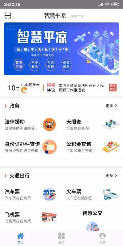 1、直接下载安装智慧平凉app至手机,一键登录后使用