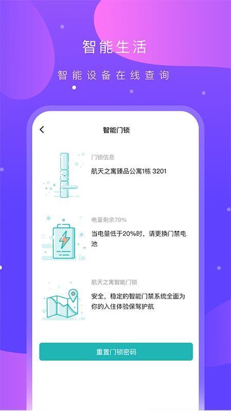 5、打开智能门锁版块,通过软件一键开启和关闭门锁,快速重置门锁密码